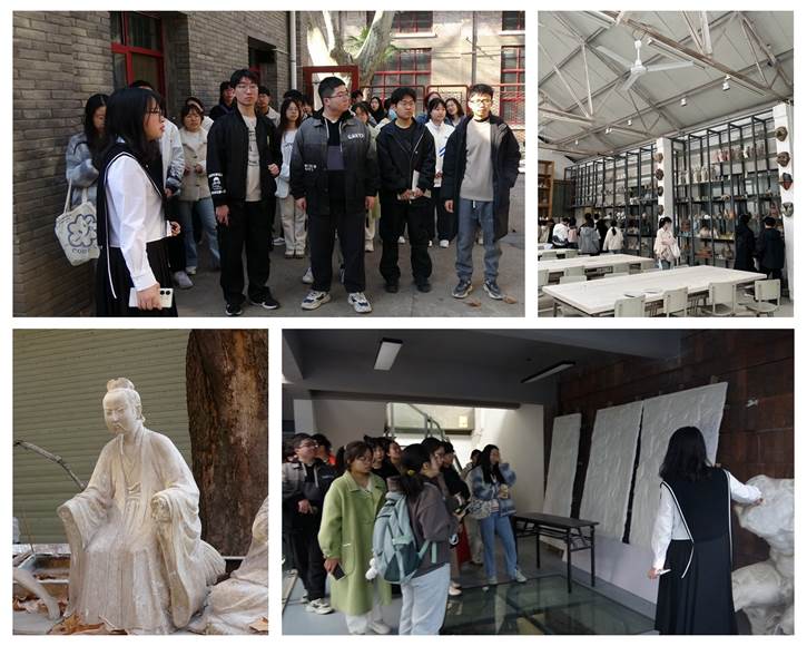 接下来,人文、机械两个党支部走进人文学院田家炳艺术中心,在人文学院崇实书院师生第一联合党支部的师培彤同学带领下,引导同学们进行参观和详细介绍,师生一同参观了雕塑、绘画等工作室,共同欣赏了艺术系学生的优秀陶艺雕塑作品。田家炳艺术中心浓厚的艺术氛围,让同学们感受到人文学院创意创新的艺术感染,体悟到人文学科的感性思考方式以及创意灵感的表达,感受到与日常工科学习环境不同的艺术氛围。