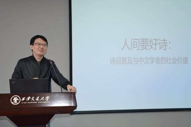 在世界诗歌日到来之际,人文学院中文系副教授李明以“人间要好诗—诗词普及与中文学者的社会价值”为题进行报告。他立足自身专业知识、治学经历和工作实践,介绍了如何在互联网时代背景下弘扬诗教传统,传承中华文脉,展现了中文系师生积极与社会各界开展合作,为普及诗词的新时代文化建设做出的贡献。李明副教授详细介绍了诗学熏陶对修养身心、提高个人精神境界的独特功效,他从社会主义精神文明建设和风清气正网络空间建设的实际需求出发,强调新时代人文学者应重新发掘自身社会价值,协调整合专业研究与大众普及,经世致用、勇于任事、致力创新,发扬中华民族悠久历史中的文化基因、精神价值和人文情怀,坚定文化自信,以推动中华优秀传统文化创造性转化、创新性发展为己任。