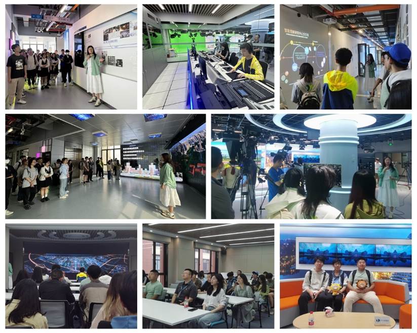 随后师生一行来到学校融媒体中心,在讲解人员的带领下,同学们深入了解了学校宣传和媒体工作的发展历程和杰出成就,近距离体验了新媒体演播室、工作站的工作环境,学习了当前学校融媒体节目的采播、录制、剪辑过程,通过观看创新港产教融合宣传片,深刻认识到创新港扎实推进“6352”工程,不断健全“1121”产学研深度融合新模式,在服务新时代西部大开发过程中发挥的重要作用。