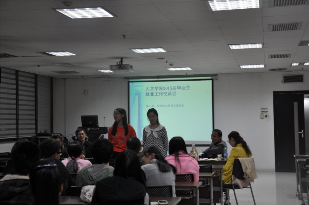 为了进一步推进文科学生的就业工作,10月27日晚,人文学院2015届研究生就业工作交流会在主E703会议室举行。