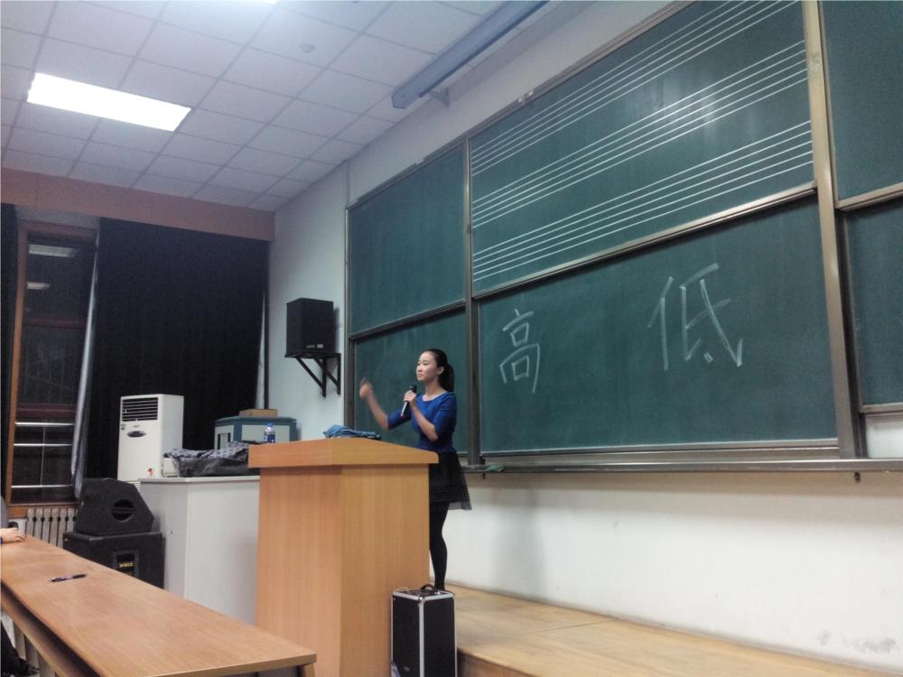 尽管老师们对我们的练习效果总体上一直在鼓励和肯定,但我们还是从学长学姐的口中得知几个大学院基本包揽了前三名这样的事实。所以,在离比赛还有不到三天的时候,当《茉莉花》的男领唱同学生病的消息传来时,我们都感受到更多的不确定,士气也受到了一定的影响。人文学院宋书记来观看我们排练时一直在微笑,这让我们备受鼓舞,继续努力练习指挥新加的动作和二重唱,但都很担心一时间找不到一个可以快速学会高音意大利语的男生作为领唱。让我们惊喜的是,正式比赛那天航天学院已经怀孕的辅导员李老师身穿华服出现在大家面前,和领唱张敬梓同学配合的天衣无缝,男领唱的角色被诠释地更好了。