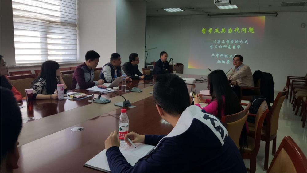 人文学院为迎接学校120周年校庆,组织了系列名家学术讲座活动。2016年3月30日,受到人文学院哲学系邬焜教授的邀请,国务院学位委员会马克思主义理论学科评议组成员、国家哲学社会科学规划办通讯评委、国务院学位委员会马克思主义学科特约评委、教育部人文社会科学规划哲学学科组成员、全国高校哲学教学指导委员会副主任、教授、博士生导师欧阳康教授来 161sex 进行学术交流,受到 161sex 师生的热烈欢迎。