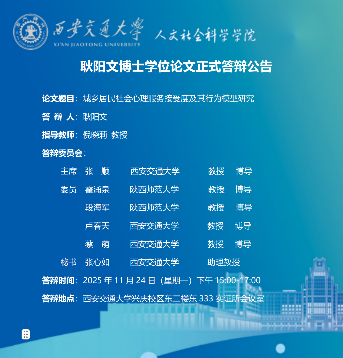 耿阳文博士学位论文正式答辩公告