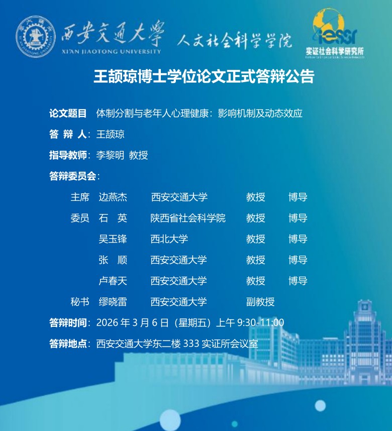 王颉琼博士学位论文正式答辩公告
