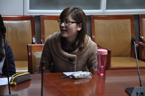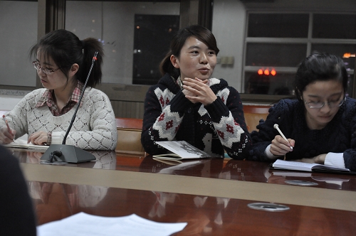 首先,李浩同学对3月31日组织的“暖春行动之曲江社会福利院之行”做了简单介绍。接下来的自由发言阶段,每位同学都谈了自己的感受。高吉昌同学指出,3月份是学雷锋活动月,但我们更应倡导学雷锋常态化,从身边的每个人每件事做起。看到福利院老人无限快乐,李瑛认为他们每个人身上都充满正能量,自己深受感染。刘屾提到,福利院的软硬件设施都非常好,这也说明我们国家在公共服务领域的重大投资颇有成效。朱婷婷、胡月娟和杨霞在发言中谈到,众生之爱皆是爱,没有什么大爱小爱之分,年长者更多需要的是我们的精神慰藉。通过同河南老乡交谈,周海建发现虽然老人身在福利院,但仍心系家乡。同时,周海建联系中国梦,认为“你可能不生在雷锋的时代,但当你遇到某件事情的时候,也会有同雷锋一样的想法”。孙亚敏、高镜雅在这次活动中体会到感恩的重要意义,呼吁大家更多地去做孤寡老人的倾听者,同时也推及到关心自己的父母以及身边的朋友。苗露露在与老人交谈时发现,老人都以自己的子女为傲,因此我们要尽最大努力完善自身,努力成为父母的骄傲。曹飞燕感触最深的是83岁聋哑老人对她的信任,认为“播种一种行为,就会收获一种习惯”,不管遇到什么困难,我们都应有积极的心态。李玉玲解析了福利院的对联“老残不孤独,人间晚辈尽儿孙。敬爱无亲疏,天下高龄皆父母”的深刻内涵。