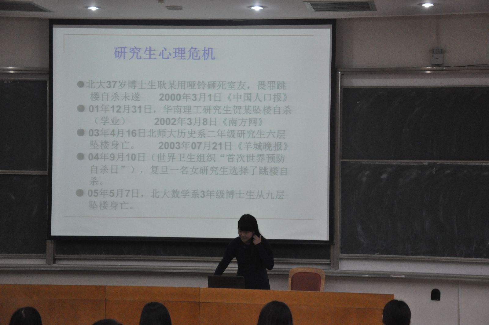 接下来,心理委员方蕊佳以PPT的形式,就心理健康标准、表现、压力排解方式等几个方面为同学们进行了讲解。