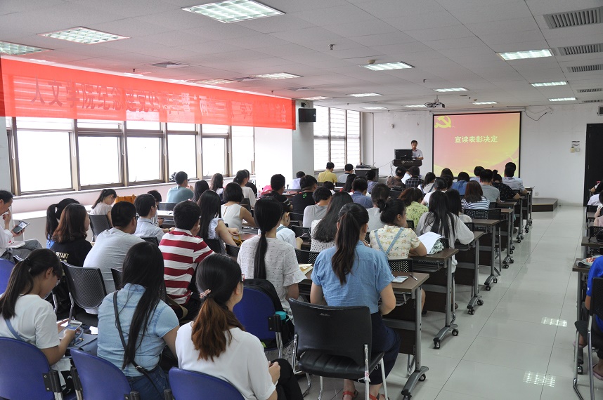随后,马晓彬书记宣读了学院党委的表彰决定和受到表彰的先进党支部和优秀党员、优秀党支部书记名单。鼓励受表彰的党组织和个人,继续发挥党支部战斗堡垒作用和党员先锋模范作用,在“两学一做”学习教育中发挥示范引领作用,在推进单位和岗位工作中敢于创新,在深化学院各项改革中勇立潮头。同时,号召学院全体师生以他们为榜样,认真履行岗位职责,扎实开展工作,群策群力,开拓创新,共筑人文学院美好的明天!