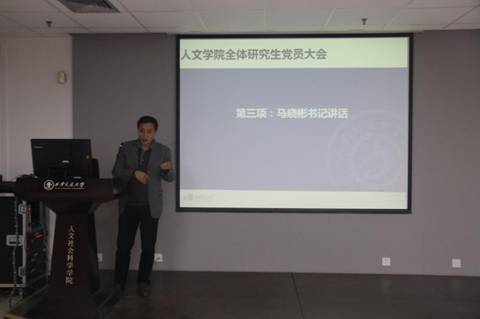 近日中共中央、国务院下发了《关于加强和改进新形势下高校思想政治工作的意见》。为深入学习贯彻文件精神,有针对性的对研究生党建工作存在的主要问题和薄弱环节进行整改,3月3日晚7点,人文学院在主楼703会议室召开了全体研究生党员大会,人文学院党委书记马晓彬,党委副书记李重,以及全体研究生党员和积极分子参加此次大会。会议由辅导员于媛芳主持。