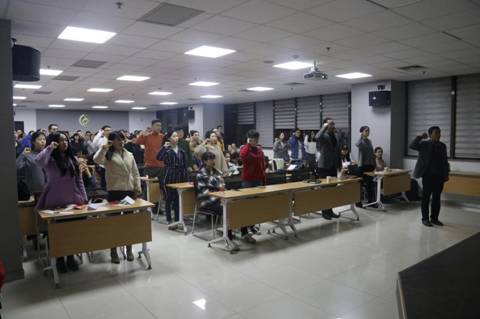 在庄严的气氛中,马晓彬书记带领全体学生党员重温入党誓词,警醒全体研究生党员要不忘初心,做合格党员。