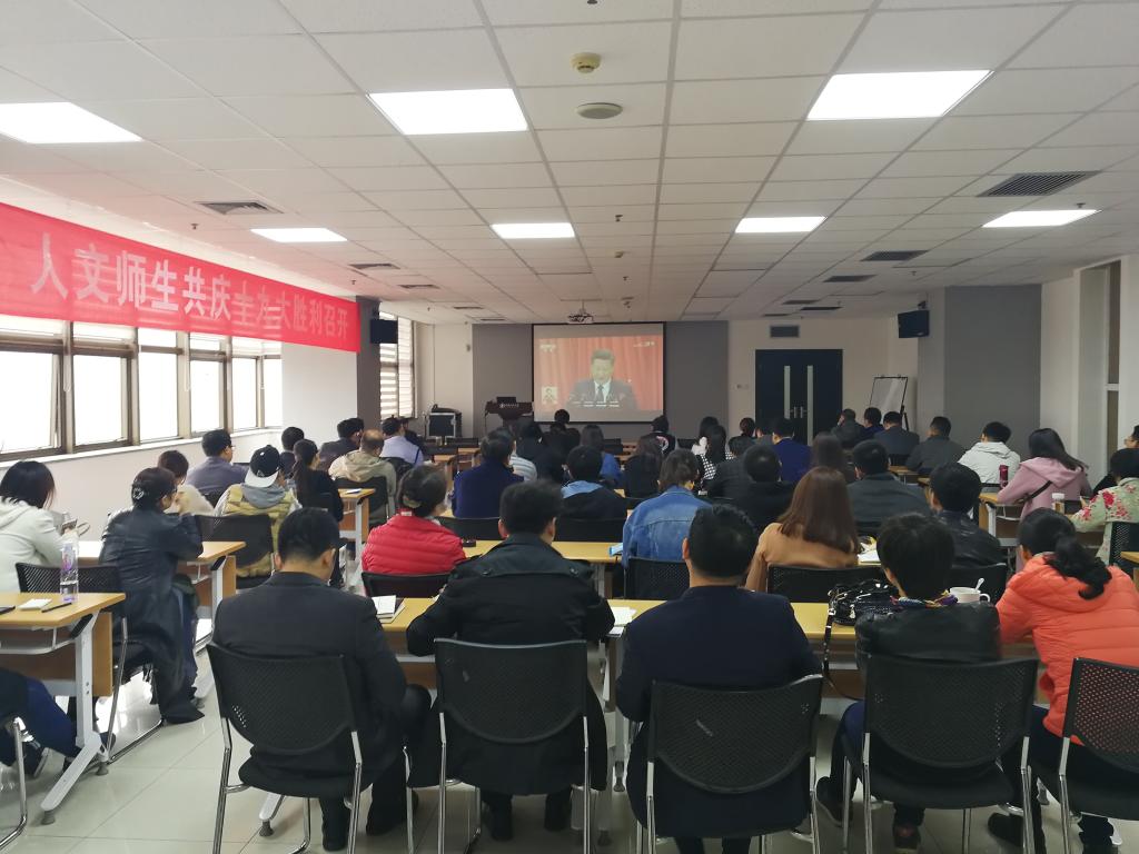 10月18日上午9时,中国共产党第十九次全国代表大会在北京人民大会堂举行。习近平同志代表第十八届中央委员会向大会作了题为《决胜全面建成小康社会 夺取新时代中国特色社会主义伟大胜利》的报告。为学习贯彻十九大会议精神,人文学院院领导、党委委员、师生党员代表齐聚主楼E703,集体观看开幕式网络直播。