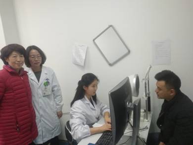 活动伊始,眼科党支部书记康前雁教授与黎黎副教授热情接待了音乐中心党支部的老师们,双方对学习贯彻十九大的体会进行了深入交流,对各自本职岗位的工作情况进行了沟通,并互相进行岗位体验。