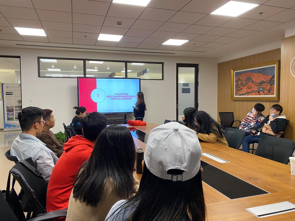 党支部书记邹铭聪首先进行了“铭记胜利记忆,弘扬斗争精神”主题分享。她带领同学们共同学习抗美援朝精神,学习习近平总书记重要讲话精神,又为大家播放了致敬抗美援朝精神系列视频,更直接的展现出斗争精神的重要性。她谈到,我们要牢记战争胜利的意义,保卫世界和平反对侵略。中国一贯奉行防御性国防政策,中国军队始终是维护世界和平的坚定力量。中国永远不称霸、不扩张,坚决反对霸权主义和强权政治。我们决不会坐视国家主权、安全、发展利益受损,决不会允许任何人任何势力侵犯和分裂祖国的神圣领土。一旦发生这样的严重情况,中国人民必将予以迎头痛击。我们应该牢记历史,不辱使命。同学们也表示会进一步加强自我学习的积极性,积极主动进行理论知识学习,进一步落实到实践中去。同时也要共同分享心得,促进交流进步。