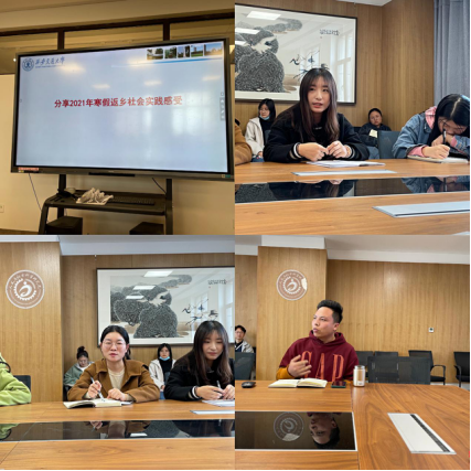 2021年3月8日,人文学院硕0115和0116党、团支部开展“学先锋模范做时代新人”寒假实践组织生活会,学习习近平总书记在党史学习教育动员大会、全国脱贫攻坚总结表彰大会和两会“下团组”的重要讲话精神,分享2021年寒假返乡社会实践感受,学习时代楷模先进事迹,延续红色精神专题领学。党支部书记倪蒙主持会议。