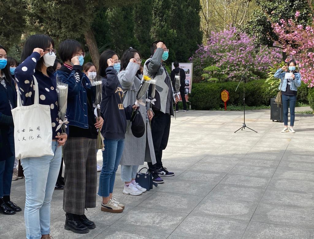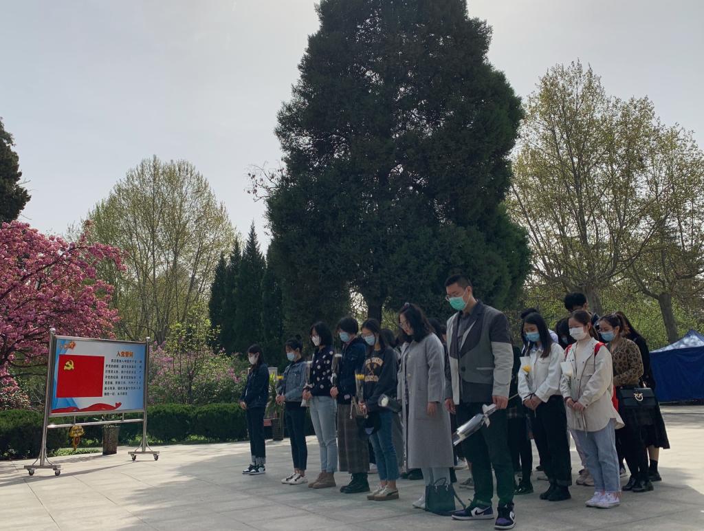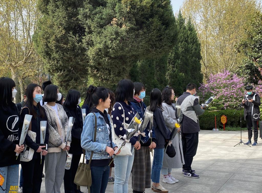 党员代表高丝雨和入党积极分子代表高展、粟超就本次活动进行了发言。高丝雨说到,我们要时时回望历史,以此激励与警示我们,要珍惜革命烈士用鲜血和生命换来的今天。高展提到,看到刻于碑石上的“革命英雄永垂不朽”八个字,不禁肃然起敬,也感悟到了先烈们把对国家、对大众的爱化作了战斗中同敌人拼杀的勇往直前的精神力量。粟超向同学们发出了倡议,提倡大家牢记使命,勇于实践,努力成长为有理想、有道德、有文化、有纪律的社会主义新时代研究生。