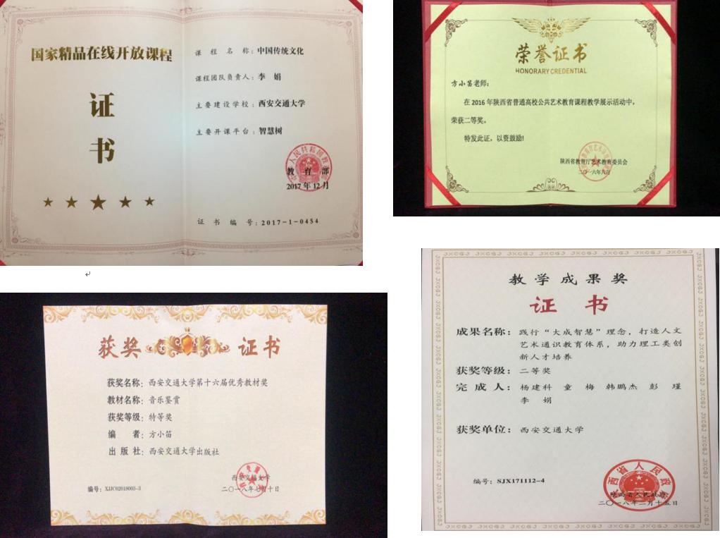 以党员为核心的音乐教育中心党支部在教学和人才培养方面做出了积极的努力,党员教师主持的《音乐鉴赏》《中国传统文化》获批“国家精品在线开放课程”、“国家一流在线课程”,《交响音乐赏析》获陕西省首批“精品在线开放课程”;党员教师获校级授课竞赛一等奖、首届教学创新大赛二等奖、课程思政优秀教师二等奖、省级授课竞赛二等奖,获两项省教学成果二等奖以及校级优秀教材特等奖、省级优秀教材二等奖;2名党员教师获校级教学名师称号,团队获“省级优秀教学团队”称号。