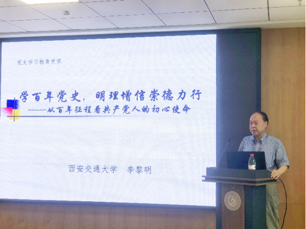 为了深入贯彻落实习近平总书记在党史学习教育大会上提出的学史明理、学史增信、学史崇德、学史力行四大目标,传承红色基因,落实校党委和学院党委关于党史学习教育的部署要求,弘扬西迁精神,6月25日上午,人文学院李黎明院长为研究生党员、积极分子讲授主题为“学百年党史,明理增信崇德力行:从百年征程看共产党人的初心使命”的党课。人文学院辅导员闫潇主持活动。