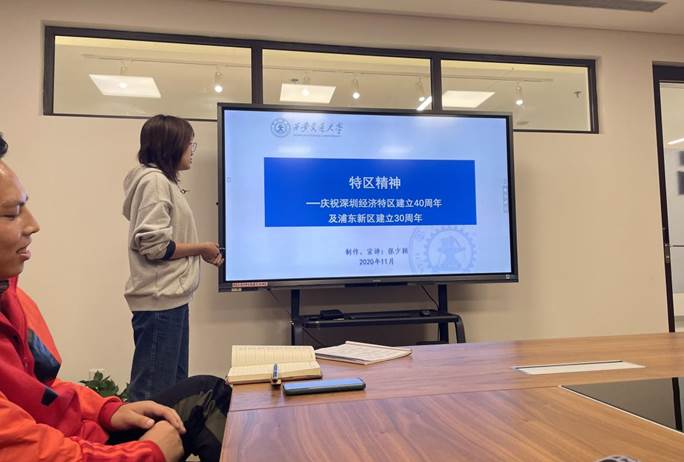 为庆祝深圳经济特区建立40周年及浦东新区建立30周年,张少颖同志以四分钱惊动党中央的故事展开,从特区的形成和特区精神的内涵与期望两方面带领支部成员学习了“敢闯敢试,敢为人先,埋头苦干”的特区精神,帮助大家树立新时代,新起点,新使命的责任意识。