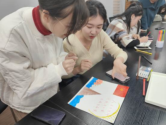 在深入学习领悟全会精神后,支部开展本次组织生活会的第三项活动:绘制“十九届六中全会”主题手抄报。支部书记景菖皓为大家发放笔纸,支部同学三五成群自行组队开始绘制手抄报,通过文字、排版和绘画等不同分工,灵活运用学科知识与基础,协调有序完成了此次手抄报的创作。